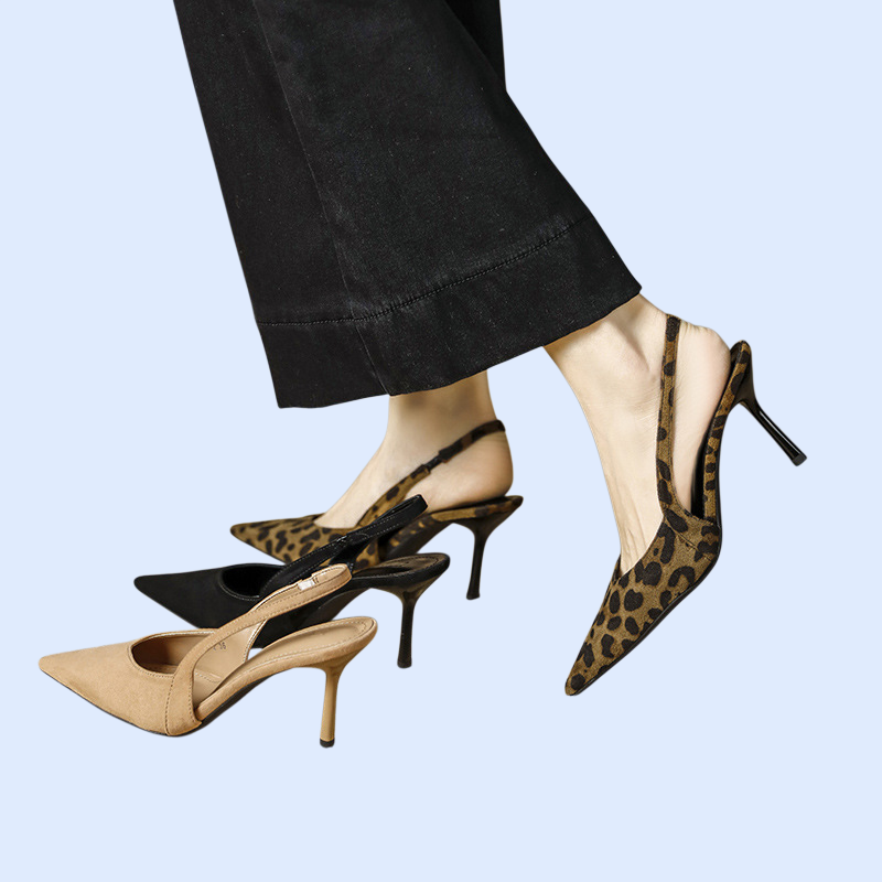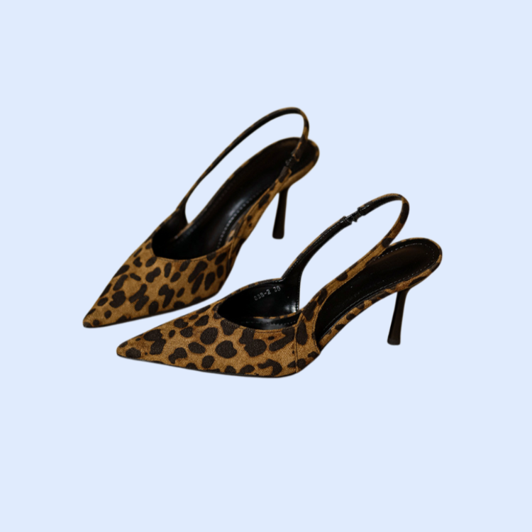 フランスデザインのヒョウ柄ハイヒール。上質素材、個性的な柄、快適な履き心地。多様なコーデに最適。
